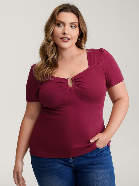 Stretchy Fitted Cut-Out Solid T-Shirt