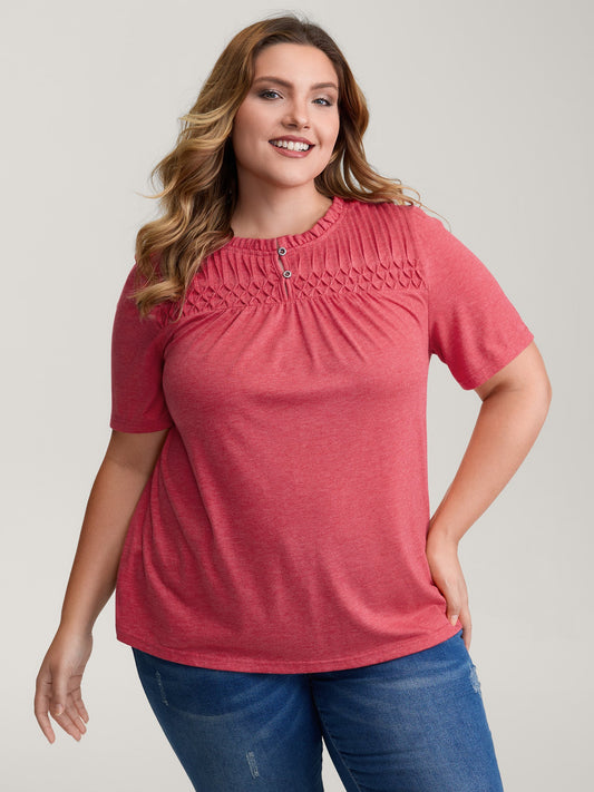 Stretchy Ruched Neckline Ruffled Neck T-Shirt