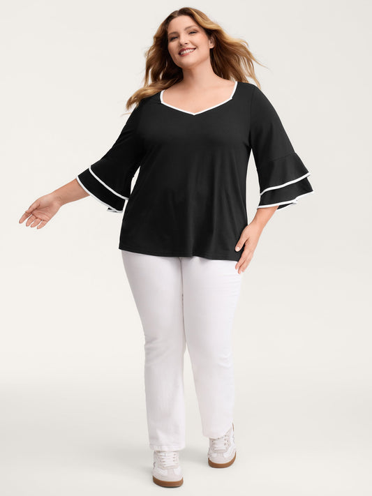 Stretchy Color Contrast Layered Sleeve T-Shirt