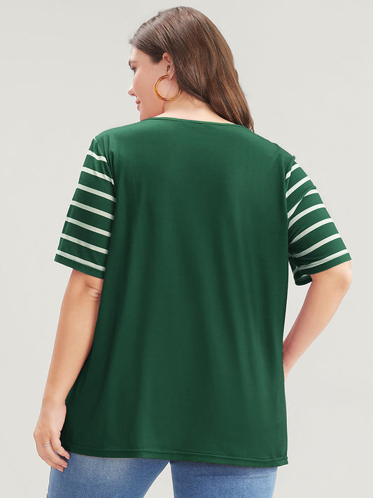 Plain Keyhole Round Neck Lace Sleeve T-shirt