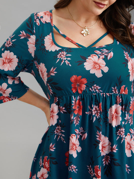 Plain Scalloped Trim Notched Frill Trim Cut Out T-shirt