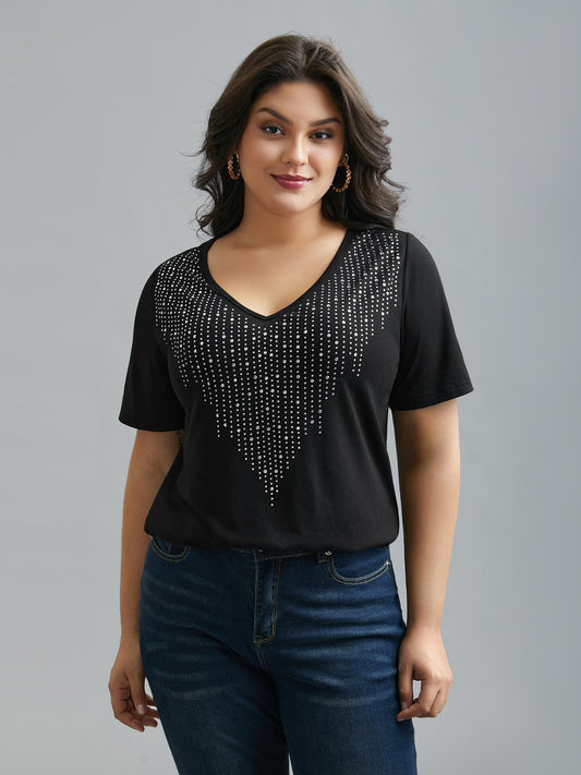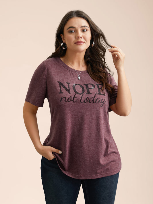 Nope Not Today Print Rhinestone Round Neck T-Shirt