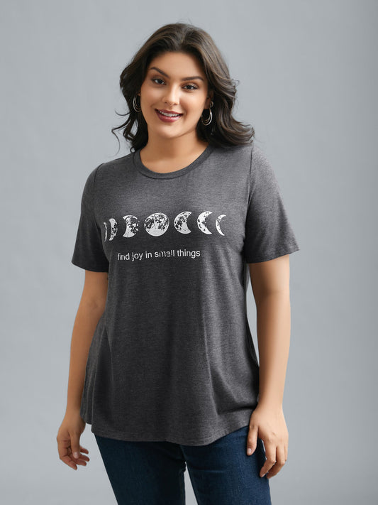 Round Neck Lunar Pattern Slim-Fit T-Shirt
