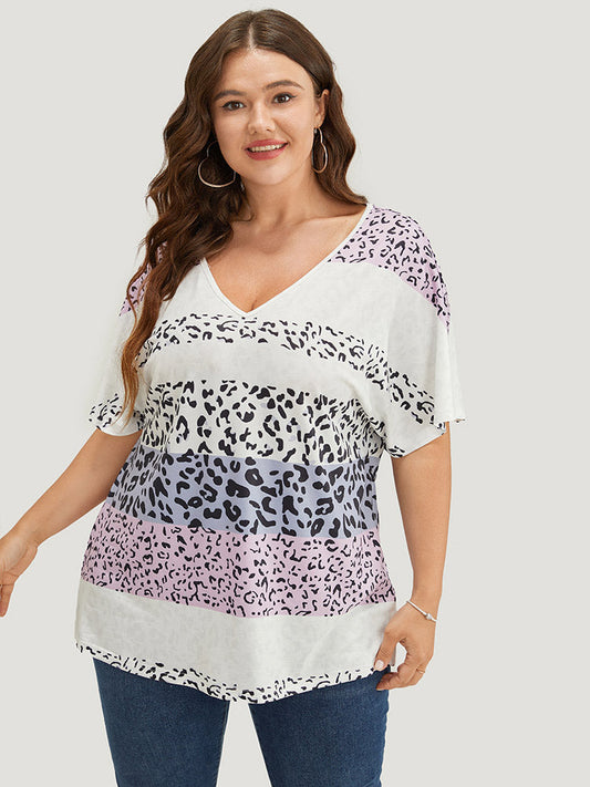 Leopard Print Colorblock Dolman Sleeve T-shirt