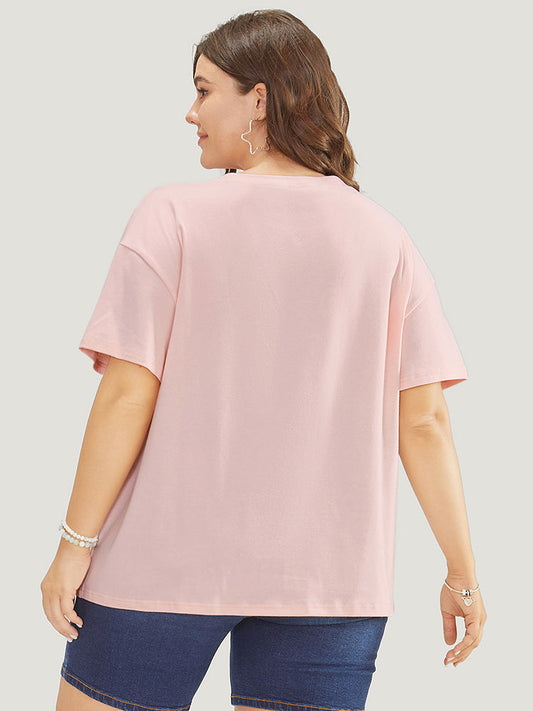 Floral & Letter Short Sleeve Regular T-shirt