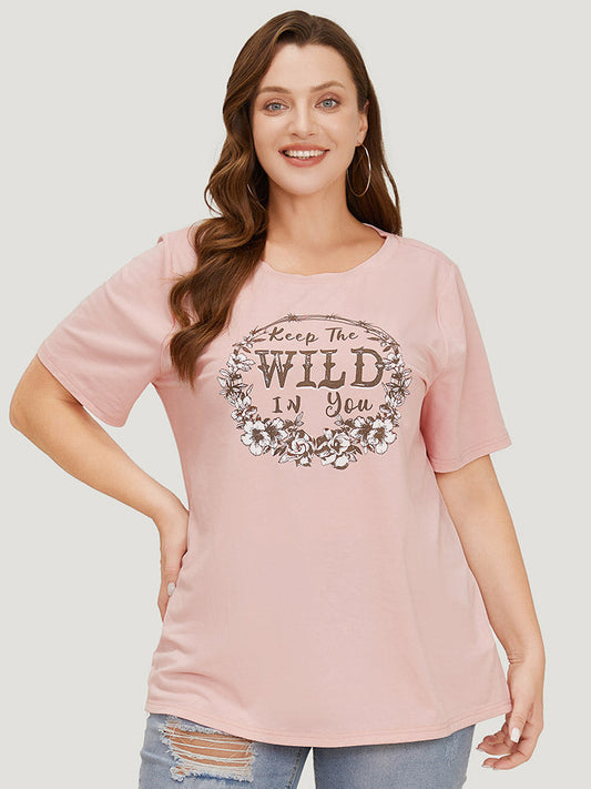 Floral Embroidered Slightly Stretchy Striped T-shirt
