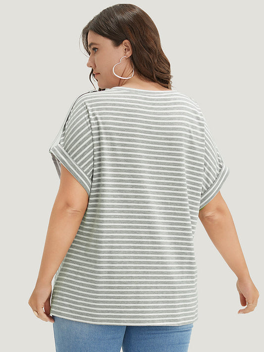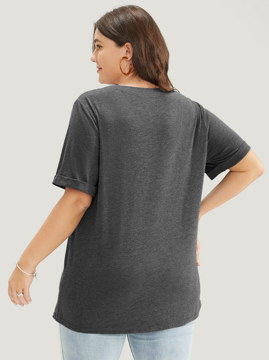 Solid Button Detail Round Neck Batwing Sleeve T-shirt
