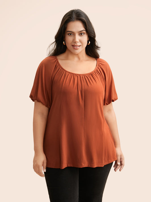 Solid Puff Sleeve Ruffle Trim T-shirt