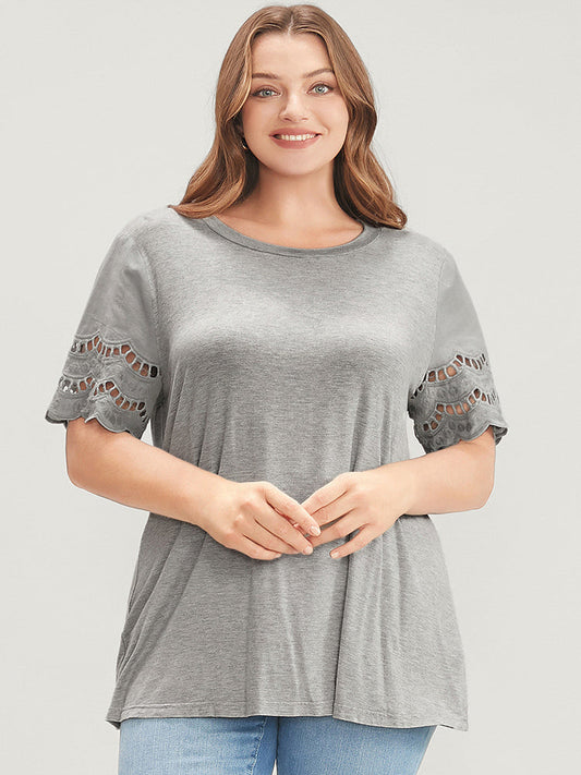 Solid Scalloped Trim Ruffle Sleeve Cut Out T-shirt