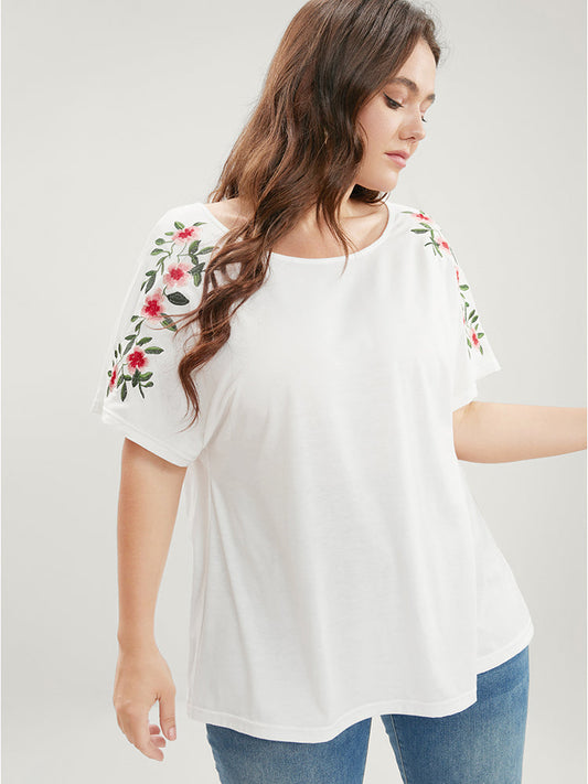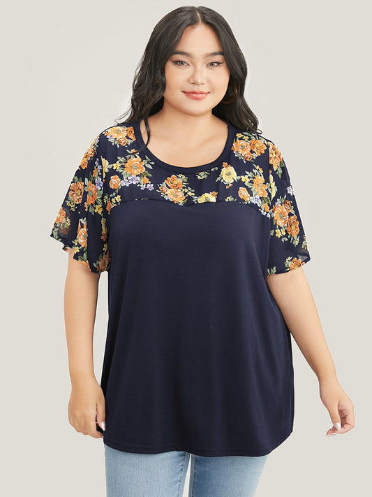 Floral Mesh Patchwork Ruffle Sleeve T-shirt