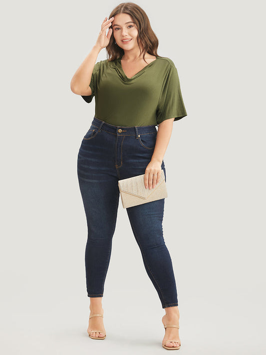 Plain Round Neck Twist Front Asymmetrical Hem T-shirt