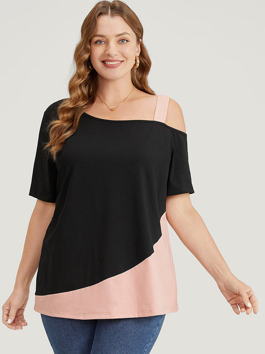 Two Tone Asymmetrical Neck T-shirt