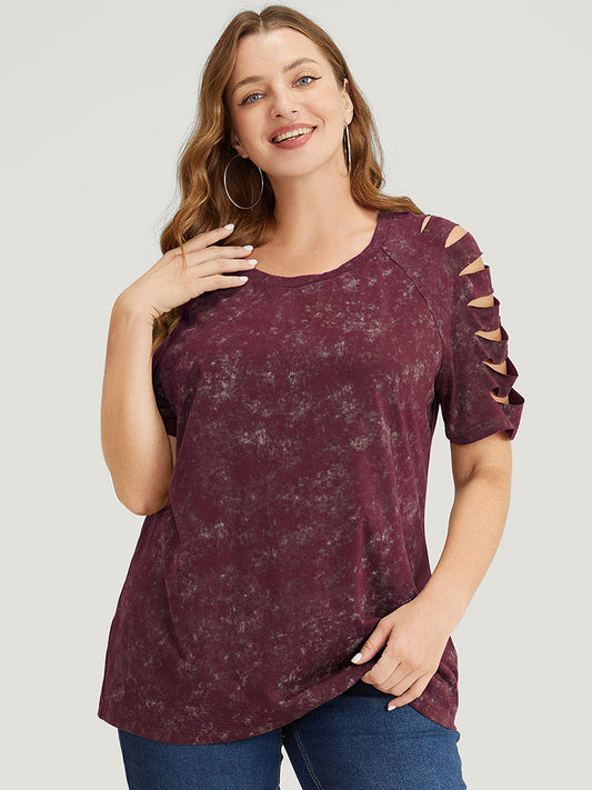 Solid Cut Out Raglan Sleeve T-shirt