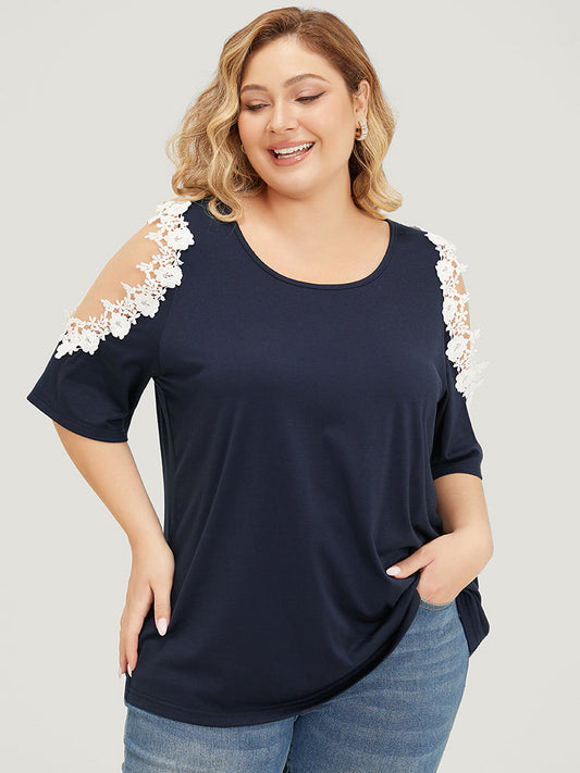 Solid Guipure Lace Cold Shoulder T-shirt