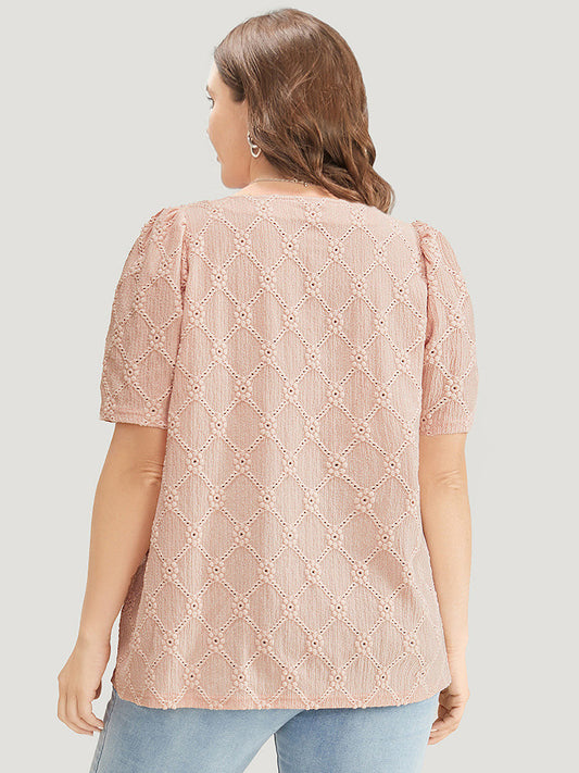 Plain Floral Broderie Anglaise Puff Sleeve T-shirt