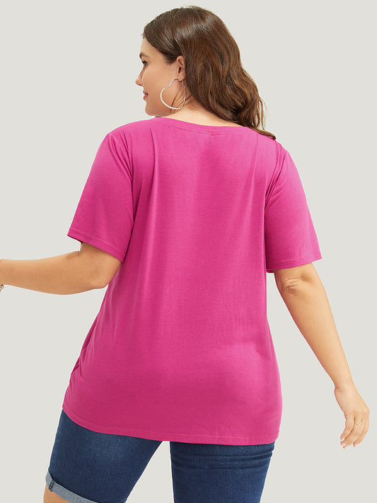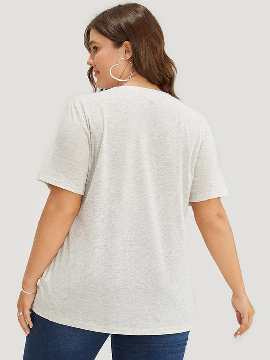 Letter Print Notched Neck T-shirt