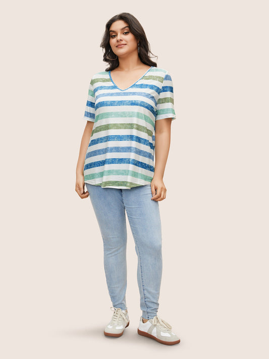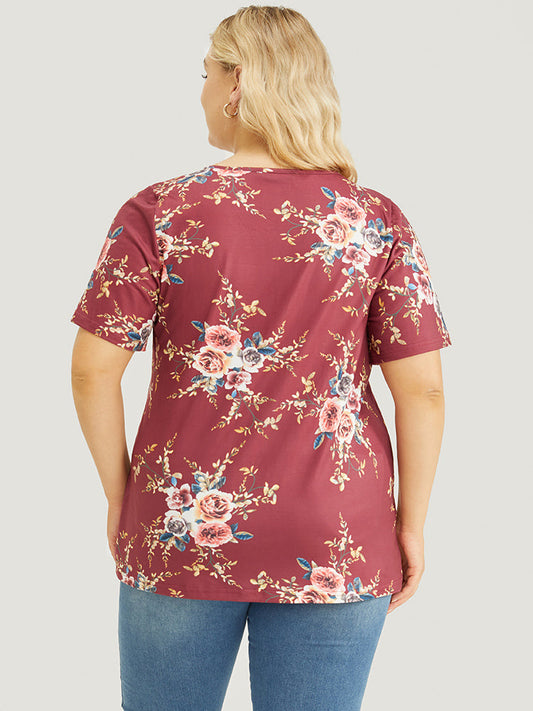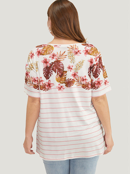 Colorblock Contrast Button Detail Roll Batwing Sleeve T-shirt