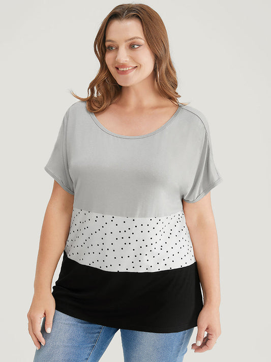 Polka Dot Colorblock Contrast Dolman Sleeve T-shirt