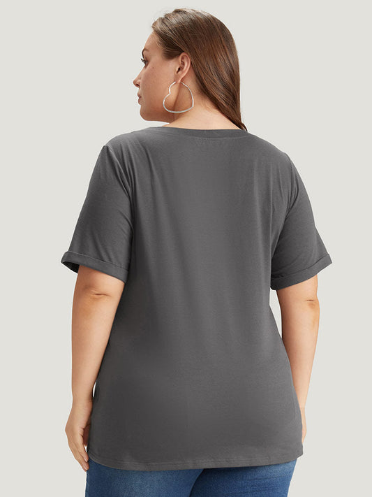 Plain Button Detail Split Asymmetrical Hem T-shirt