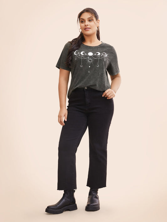 Moon & Star Print Vintage Graphic T-shirt