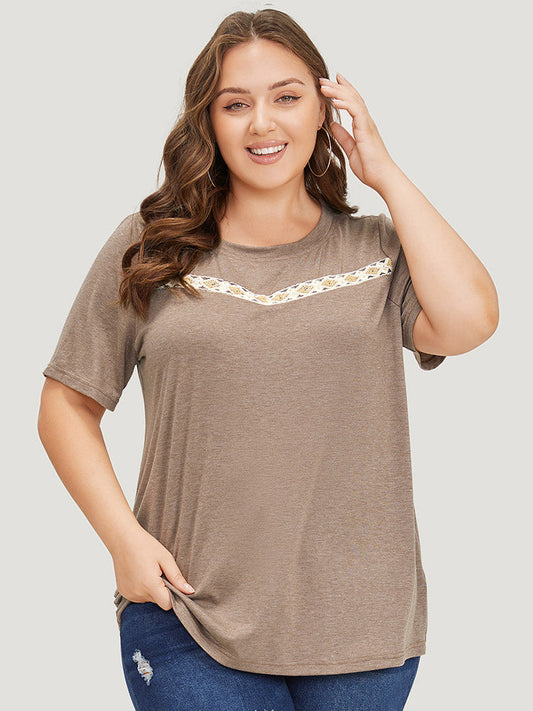 Lace Panel Contrast Round Neck T-shirt