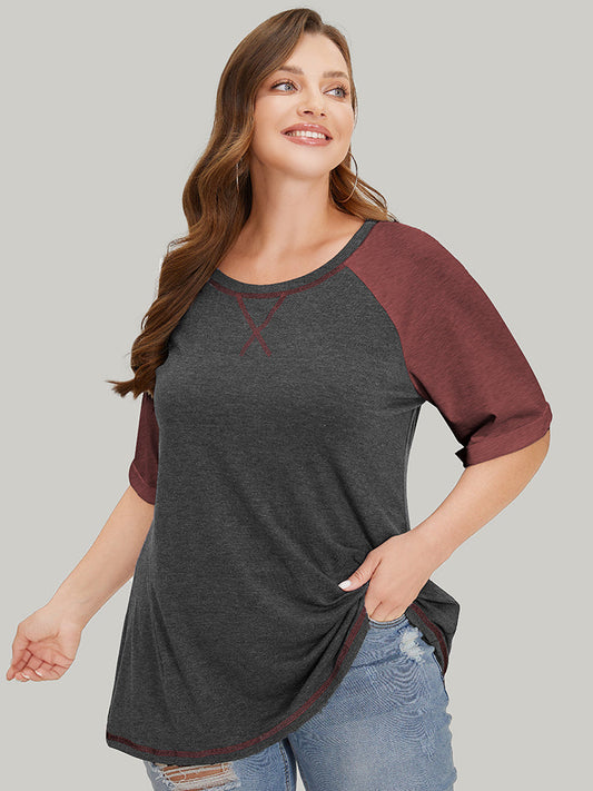 Supersoft Essentials Two Tone Stitch Roll Raglan Sleeve T-shirt