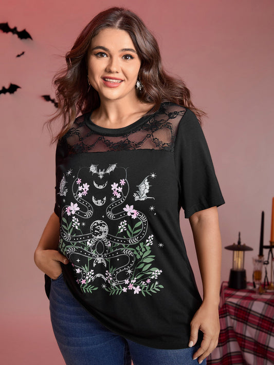 Midnight Garden Sheer Lace Trim T-Shirt