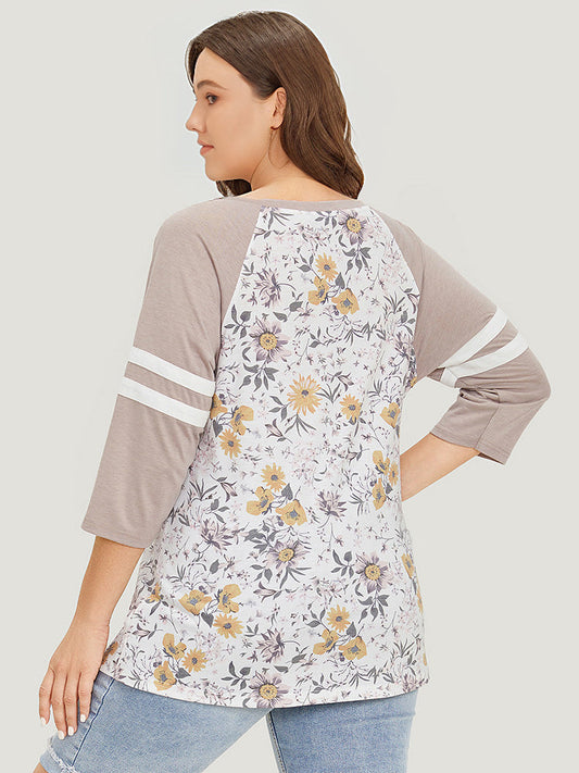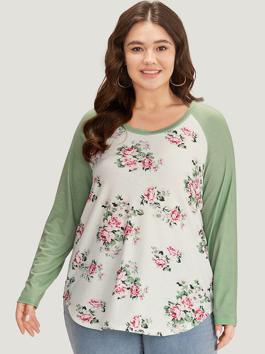 Floral Print Patchwork Raglan Sleeve T-shirt