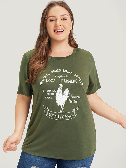 Letter & Animal Print Crew Neck Heather Graphic Tee