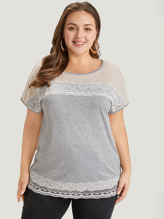 Lace Panel Contrast Batwing Sleeve T-shirt