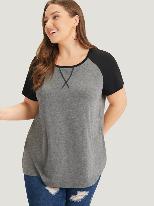 Two Tone Raglan Sleeve Crew Neck T-shirt