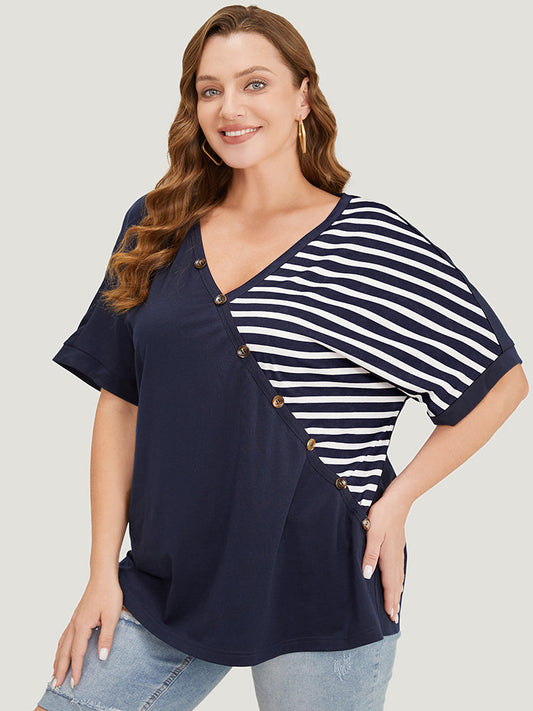 Striped Contrast Wrap Batwing Sleeve Patchwork T-shirt