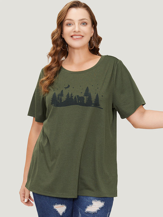Tree & Moon Print Crew Neck Graphic Tee