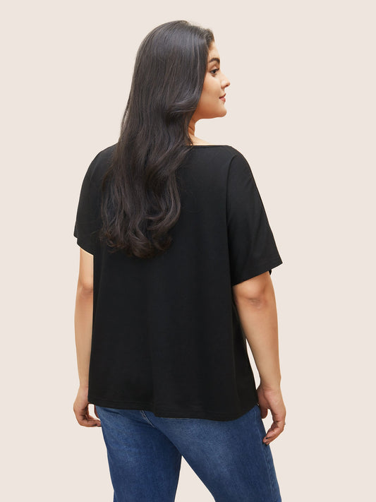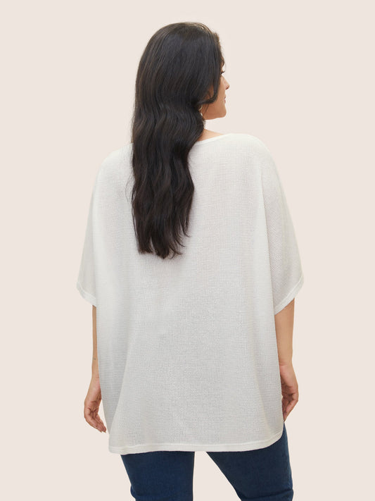 Plain Textured Jacquard Dolman Sleeve T-shirt