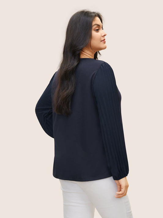 Solid Lantern Sleeve Patchwork Pleated T-shirt