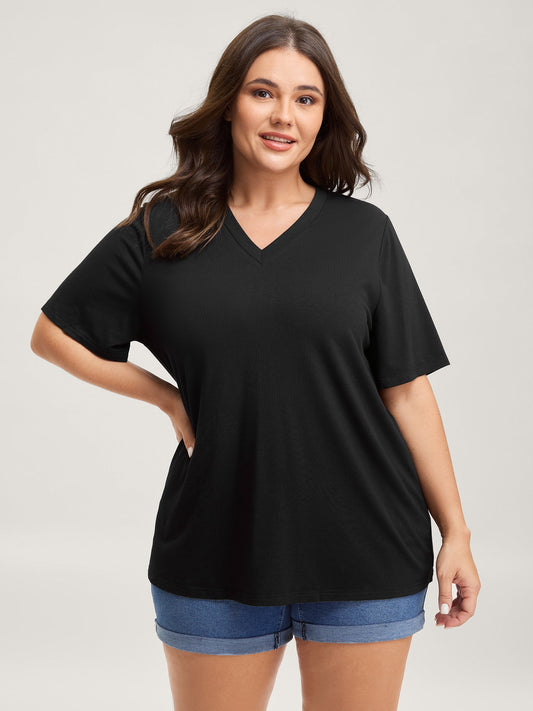 Lace Ribbon V-Neck Relaxed Fit T-Shirt