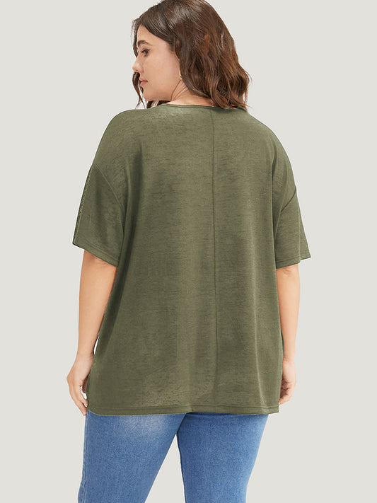 Plain Drop Shoulder Sheer V Neck T-shirt