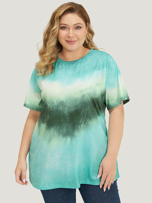Tie Dye Drop Shoulder Round Neck T-shirt