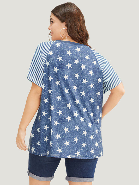 Star Patchwork Striped Raglan Sleeve T-shirt