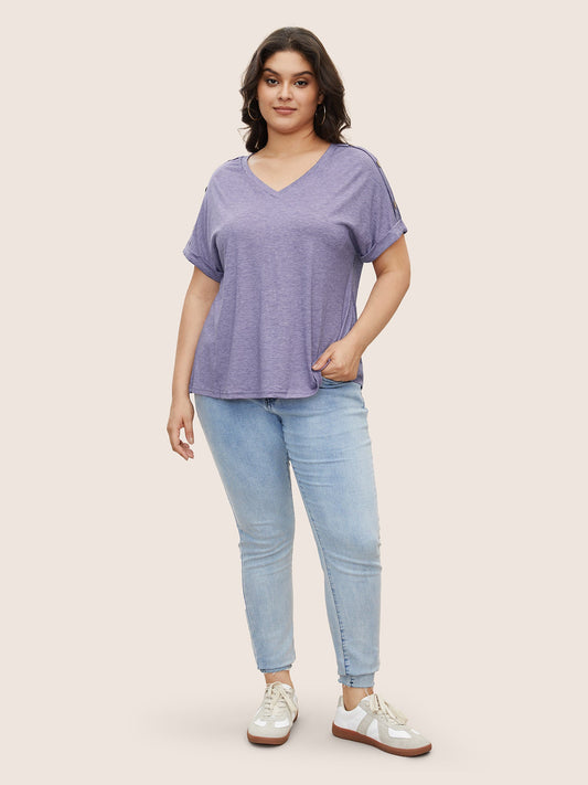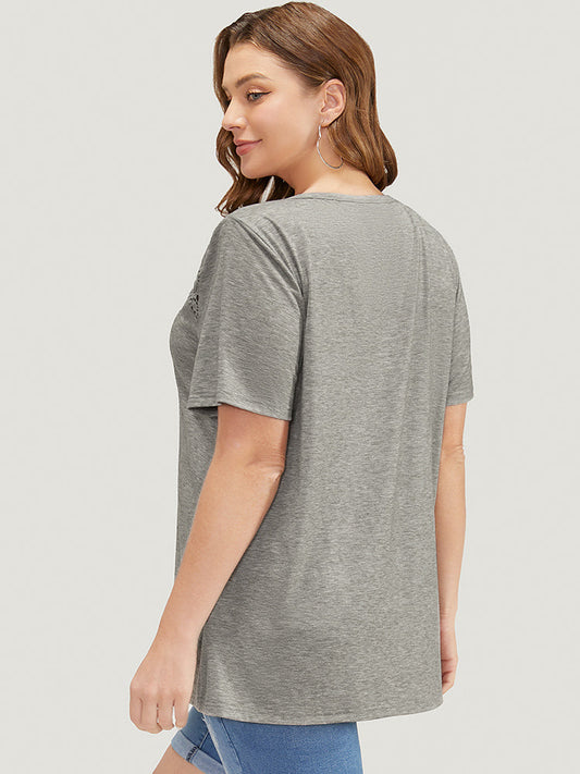 Plain Contrast Lace Slightly Stretchy T-shirt