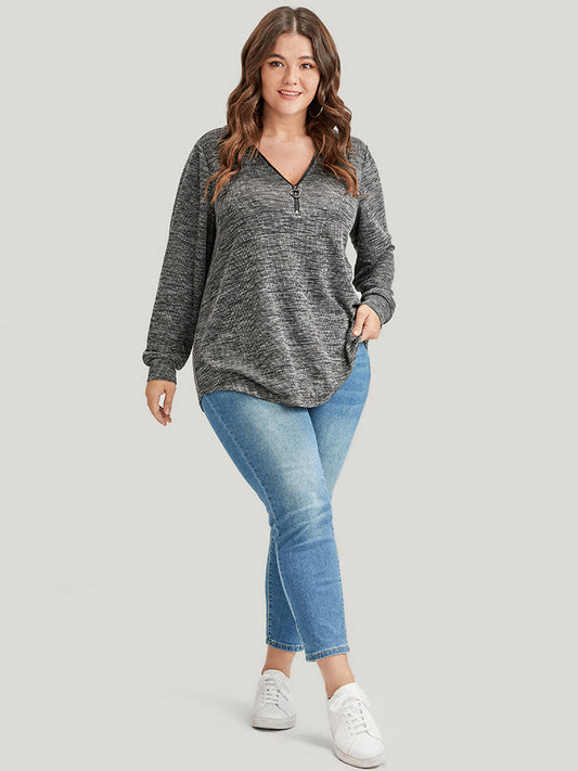 Solid O Ring Zip Rib Knit Long Tee