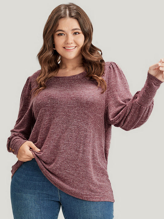 Plain Button Detail Batwing Sleeve T-shirt
