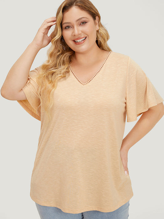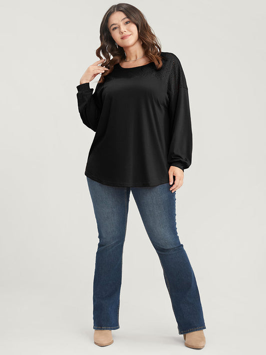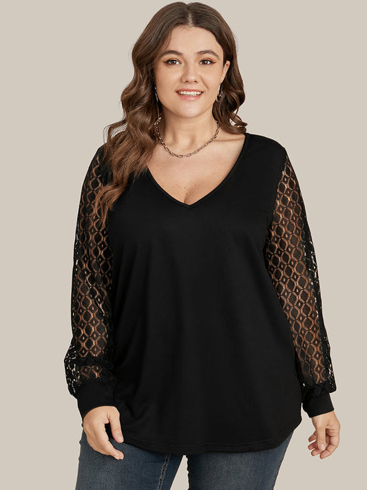 Floral Contrast Lace Mesh Raglan Sleeve T-shirt