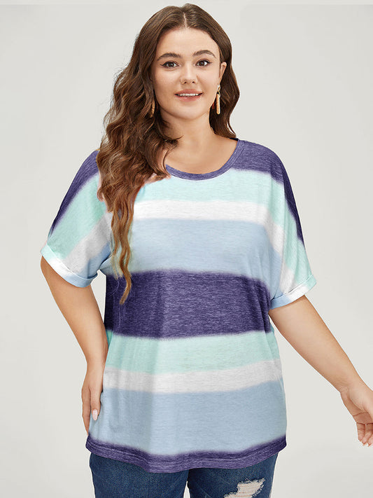 Striped Contrast Roll Dolman Sleeve T-shirt