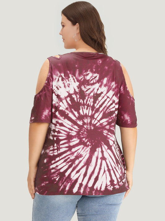 Tie Dye Cut Out Cold Shoulder T-shirt