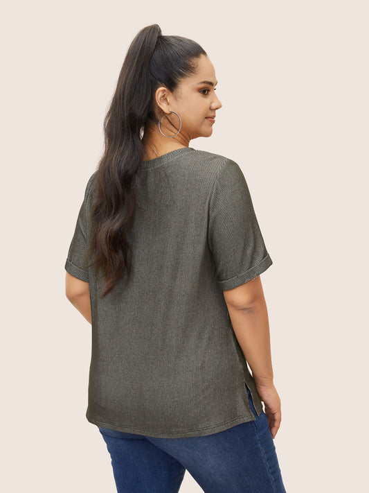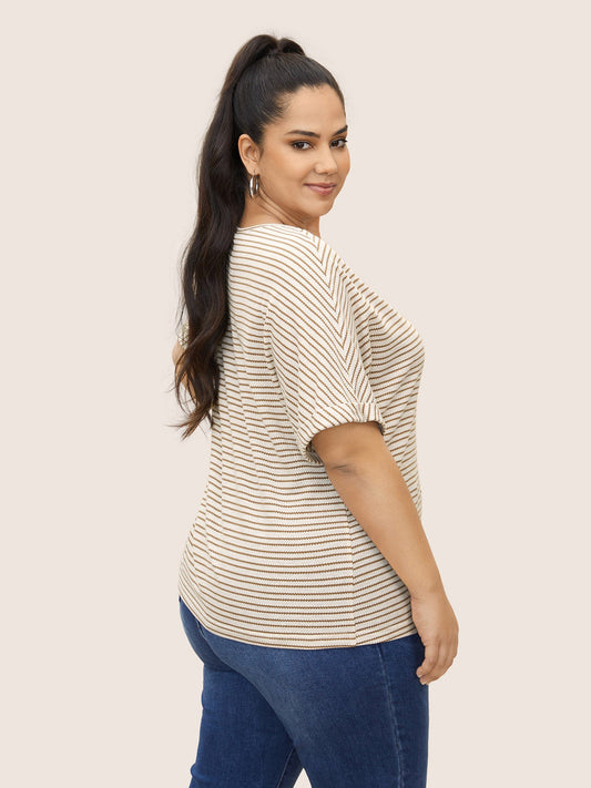 Striped Flat Collar With V Notch Cuffed Sleeve T-shirt