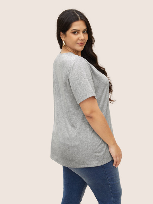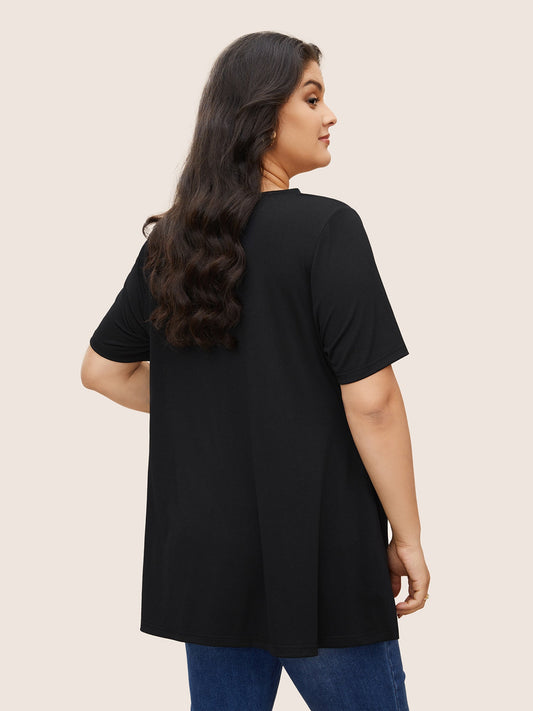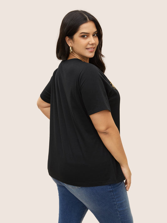 Round Neck Floral Embroidered Scalloped Trim T-shirt