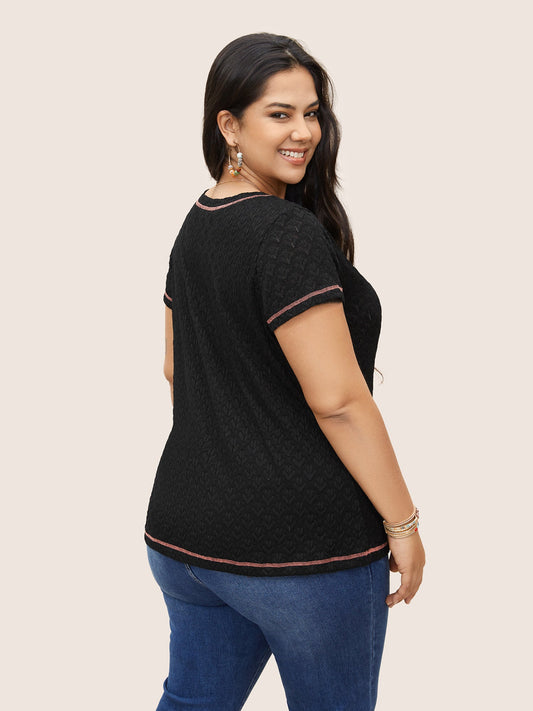 Crew Neck Lace Insert Contrast Stitch T-shirt