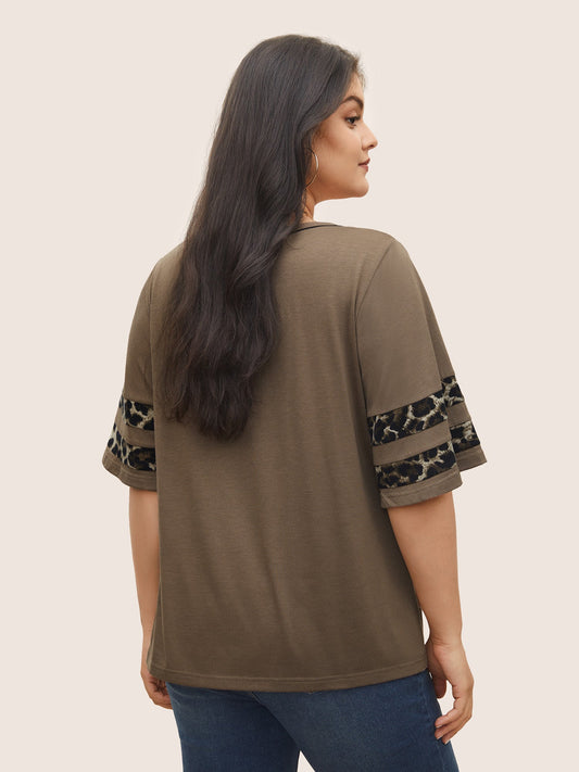 Leopard Print Patchwork Ruffle Sleeve T-shirt
