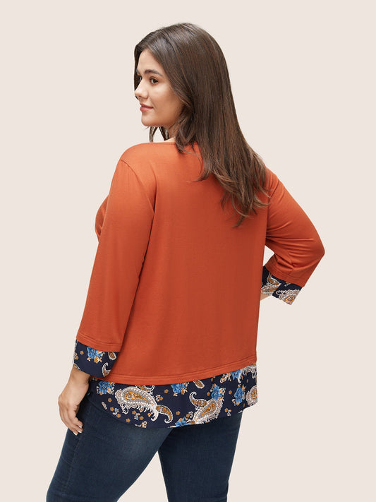 Contrast Paisley Print Curved Hem T-shirt